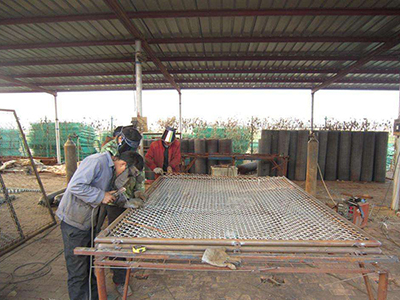 立柱的上部和下部两端焊接出375px左右的套管,用来插接横管。插接上横管后体育场围网的结构就构成了,关于装置进程阐明球场围网厂家A关于装置进程阐明、 接下来便是装置围网了,先将卷网展平,然后穿刺进钢筋棍,构成正方形的围网挂网,挂网得需求几个人一起进行。